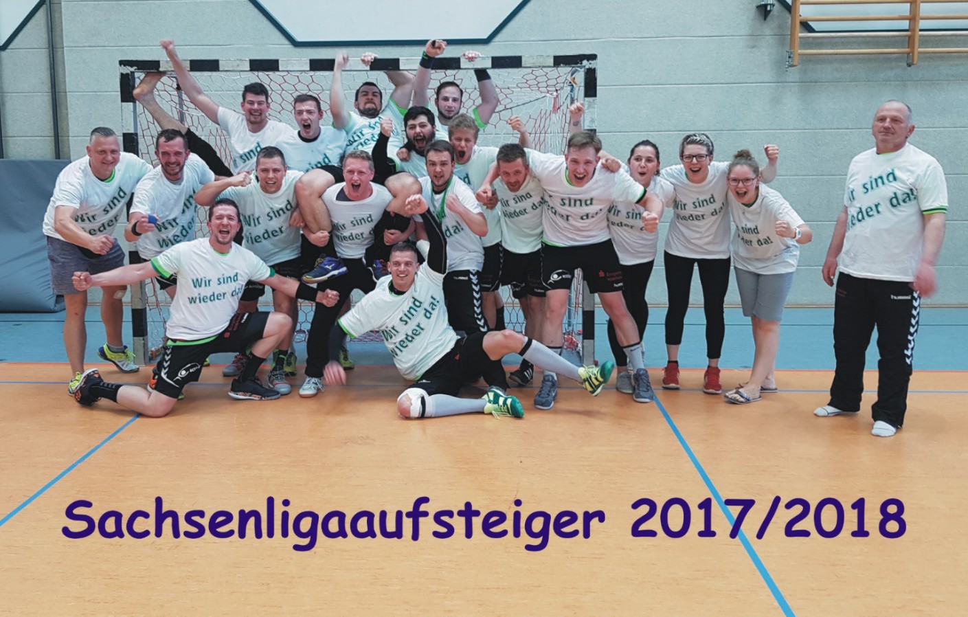 Am 13. Mai war es dann somit auch bei den Männern soweit. Nach dem richtungsweisenden 26:21-Sieg im Hinspiel zu Hause bezwang man vor gut 80 mitgereisten Fans und 120 Harthaer Anhängern den Sachsenligisten mit 29:26 auch in dessen heimischer Umgebung und machte damit den Aufstieg in die höchste Liga Sachsens perfekt.