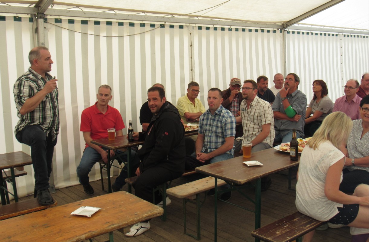 Am 2. Juni nun war endlich genügend Gelegenheit, zum Vereinsfest die vielen Erfolge mit den Fans zu feiern. Zunächst gab es ein schönes Rahmenprogramm mit Spielen in der großen Sporthalle, der fast schon traditionellen „Jedes-Los-gewinnt-Tombola“ und einem „Stammtisch am Nachmittag“, zu dem sich verdienstvolle ehemalige und noch aktive ehrenamtlich Tätige - u. a. auch Bürgermeister Wolfgang Triebert - im Festzelt einfanden.