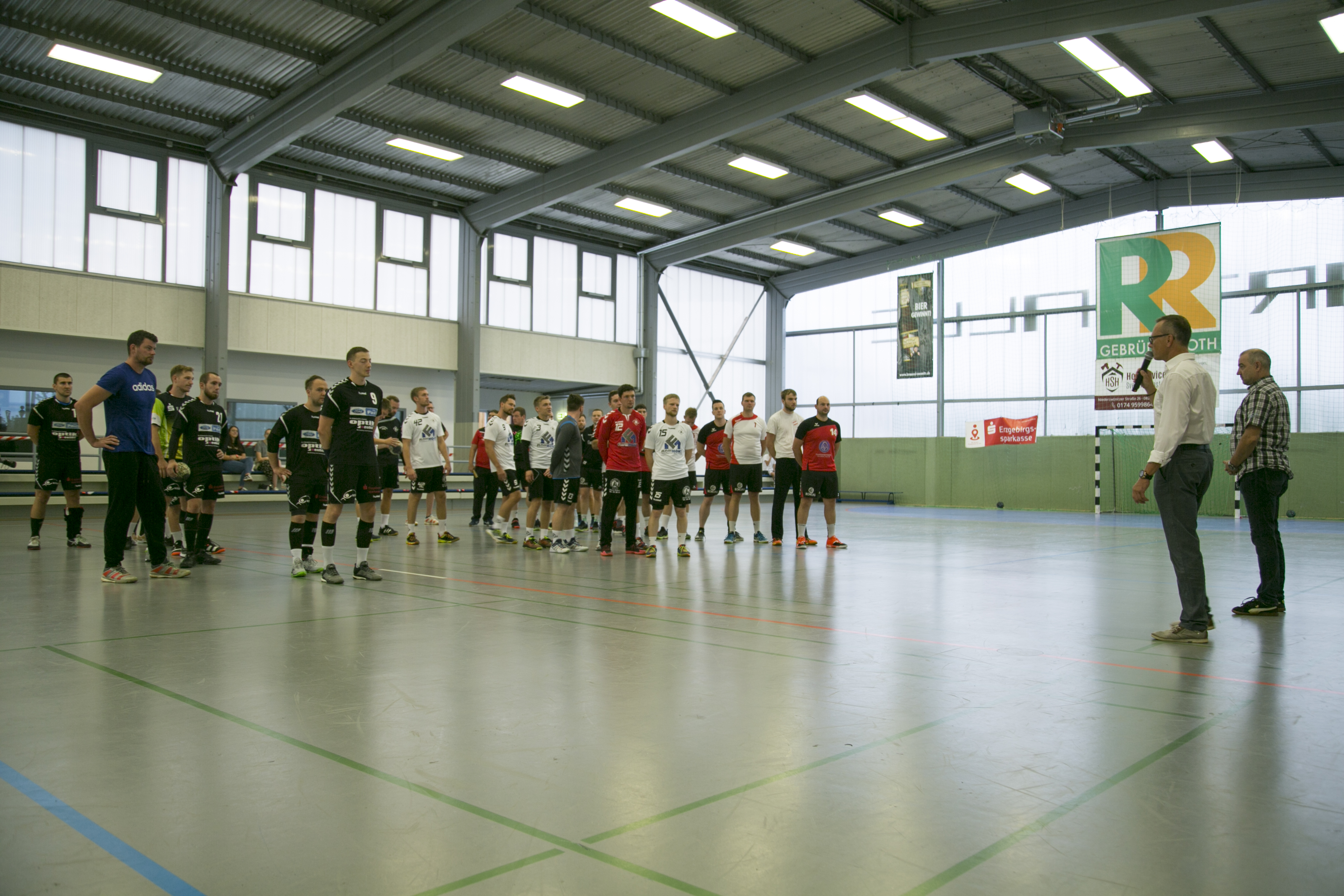 Nach der Begrüßung der Turniermannschaften durch Sparkassenvertreter Jens Römling und Vereinsvorsitzenden Ralf Beckmann mussten die HSV-Männer gleich in der ersten Partie gegen den Vorjahresvierten der Verbandsliga West SV Rotation Weißenborn ran. Trotz der guten Saisonplatzierung hatten die Randfreiberger gegen die 28-er im Grunde keine Chance auf eine Überraschung. Unter anderem mit Nico Langer und Tom Anger - letzterer am Ende auch bester Spieler des Turniers - setzten sich auf Zwönitzer Seite andere Spieler als gewohnt mit dynamischen Aktionen sehr gut ins Szene und sorgten schnell für klare Verhältnisse. Am Ende siegten die Parkettherren nach den 2x 20 Minuten Spielzeit mit 19:10.